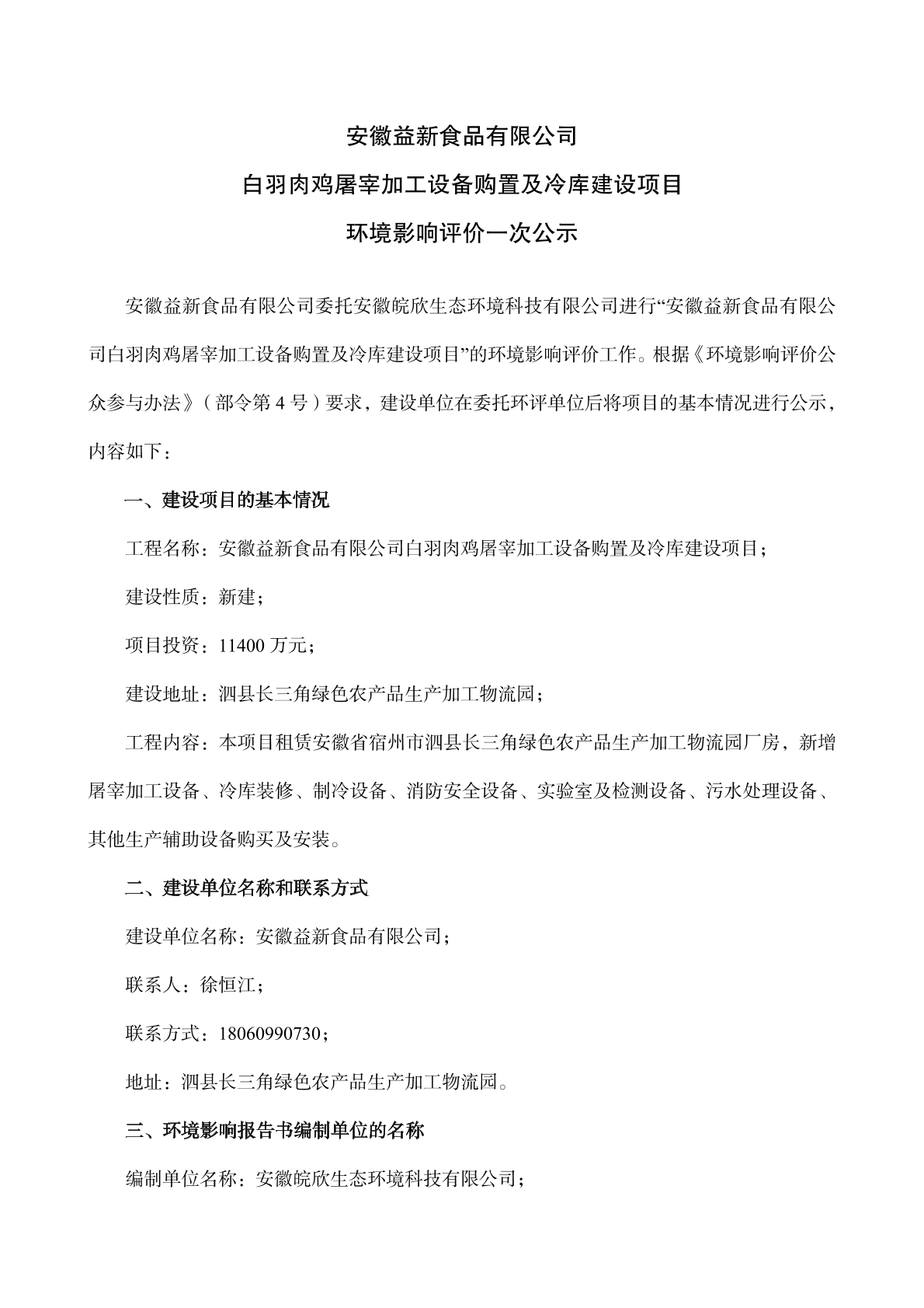 白羽肉鸡屠宰加工设备购置及冷库建设项目一次公示